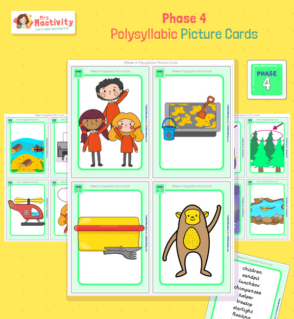 Phase 4 Polysyllabic Words Picture Cards