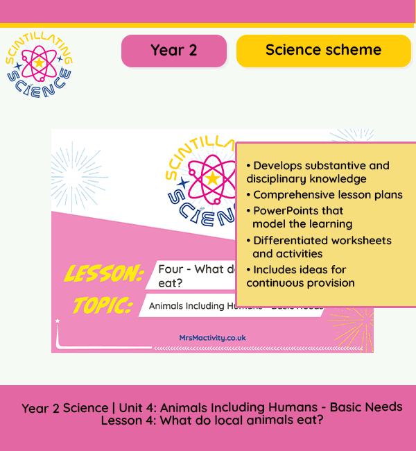This Year 2 Animals Including Humans – Basic Needs lesson pack focuses on investigating what animals eat in the local environment. As part of the Animals Including Humans – Basic Needs unit, pupils plan and carry out a simple test to find out how animals such as foxes, mice and ants meet their basic need for food.